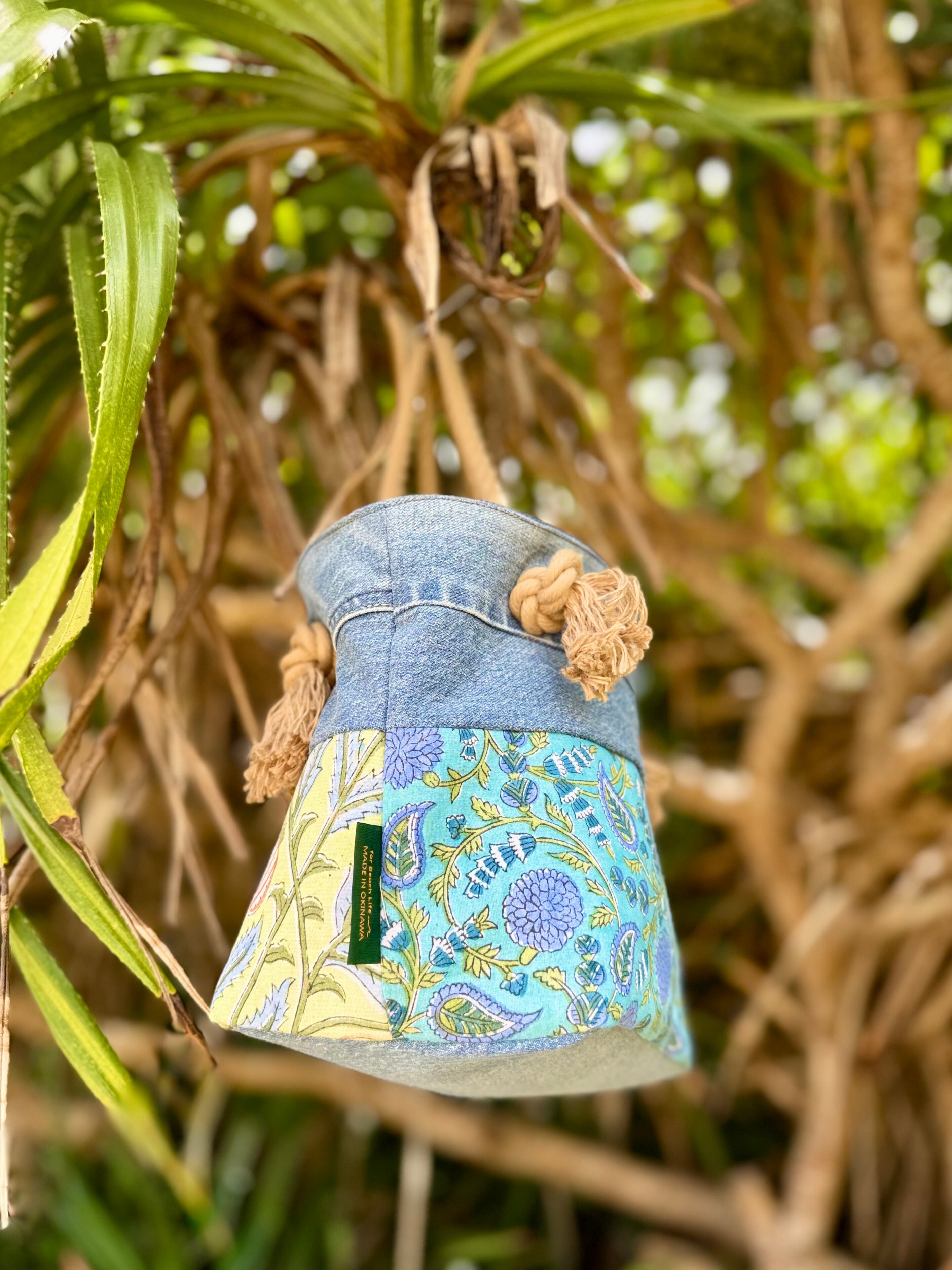 ※「Onda Canta」の特徴でもあるユーズドデニムのパッチワークは、ステッチをていねいにほどき長年履きこんで出来たあたり部分を効果的に使っています。一点一点デニムの濃淡など異なります。