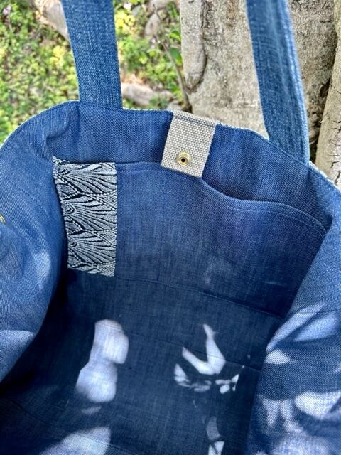 きらきらとしたヴィンテージレースをusedデニムと組み合わせ、真鍮無垢リングを付けたラグジュアリーなトートバッグ。