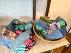 ※「Onda Canta」の特徴でもあるユーズドデニムのパッチワークは、ステッチをていねいにほどき長年履きこんで出来たあたり部分を効果的に使っています。一点一点デニムの濃淡など異なります。