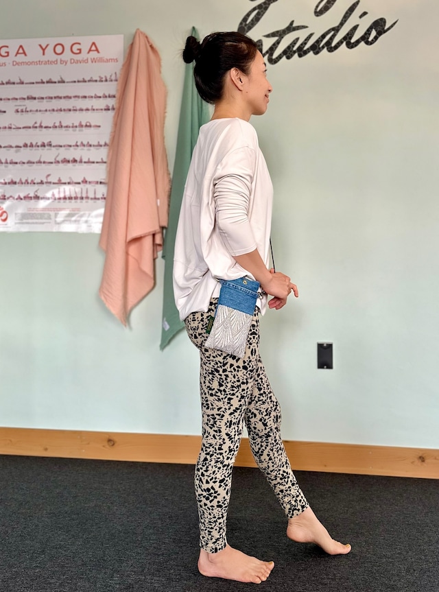 きらきらとしたヴィンテージレースをusedデニムと組み合わたスマホバッグ